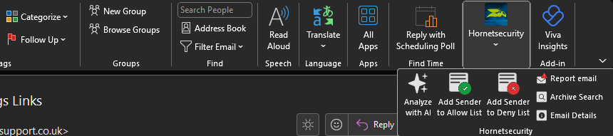 You can use the outlook add-in for any quick actions you may want to take such as: blacklisting/whitelisting senders reporting the sender or viewing email details (Sent/received date, encryption status)